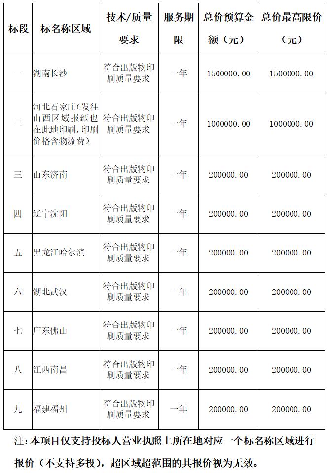 7、投標(biāo)人僅對所投標(biāo)段進行報價,印刷費報價應(yīng)根據(jù)套紅印刷(2+1)的每印張報價,否則視為無效響應(yīng);